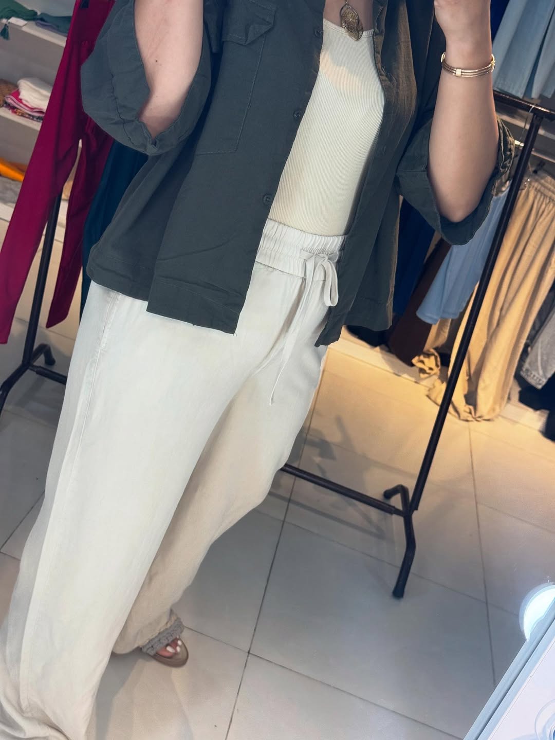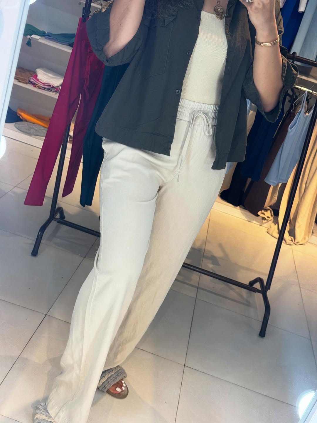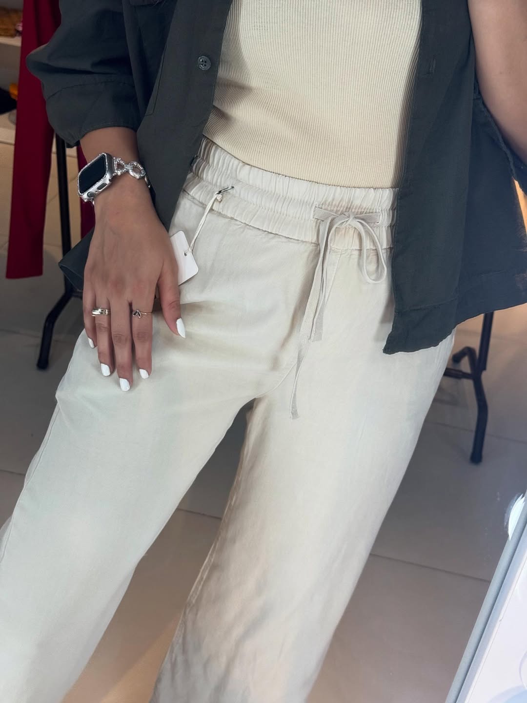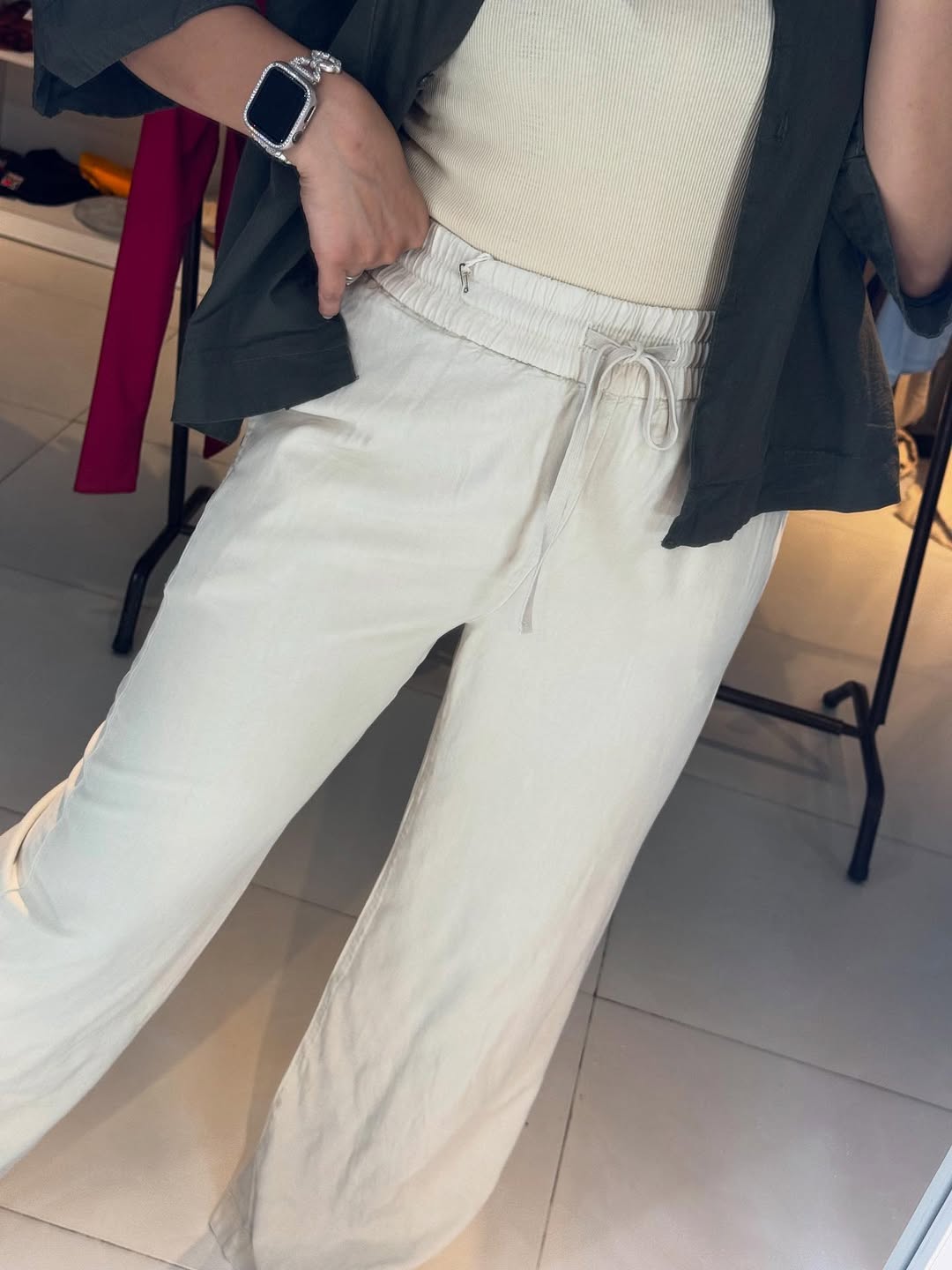 شلوار سیلک کرم نرم و لطیف کمر کش مدل از بالا گشاد سایز ۳۶ تا ۵۲